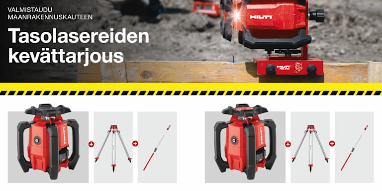 *Alennuskoodi PROKIT2000 koskee vain Hilti työkalutarvikkeita (poranterät, sahanterät, katkaisulaikat, hiontalaikat, ruuvauskärjet, hylsyt, taltat, imureiden pölypussit, suodattimet ja tarvikkeet), mekaanisia ankkureita sekä ruuvaus- ja suorakiinnitystekniikan tarvikkeita. (Hydraulisten työkalujen leikkuuterät, puristusleuat, palokatkotuotteet sekä hissi- ja takakartioankkurit eivät sisälly tarjoukseen). Tarjous on voimassa 30.4.2026 asti.